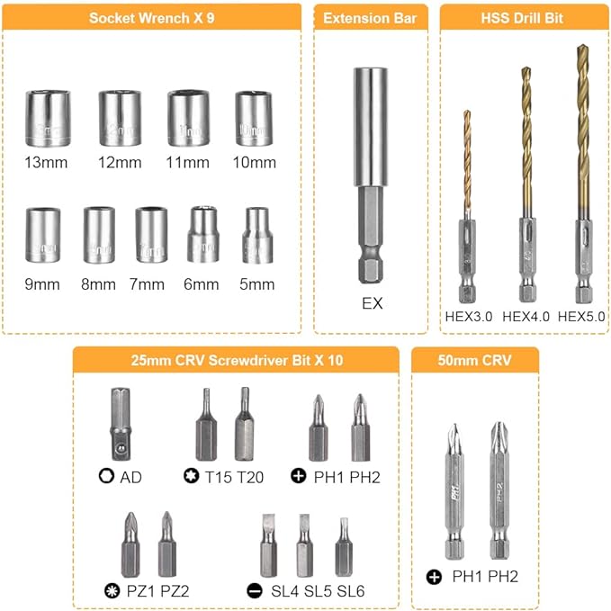 • معاه 48 قطعة مختلفين عشان متدورش كتير على مفكات.